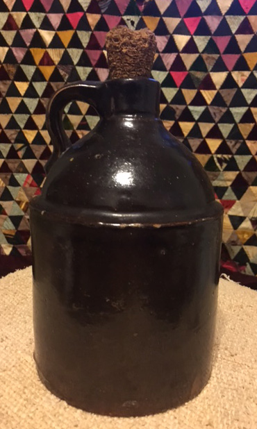 Darling little brown jug (about 8 inches high) from the turn of the century followed me home.  Granny's rheumatism medicine in a travel size.